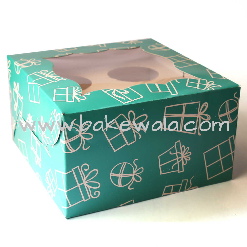Buy Cupcake Boxes 4 Cavities – Gift Box Print – Teal Green 25 PCS at wholesale price from Bakewala Business. Delivering pan India.